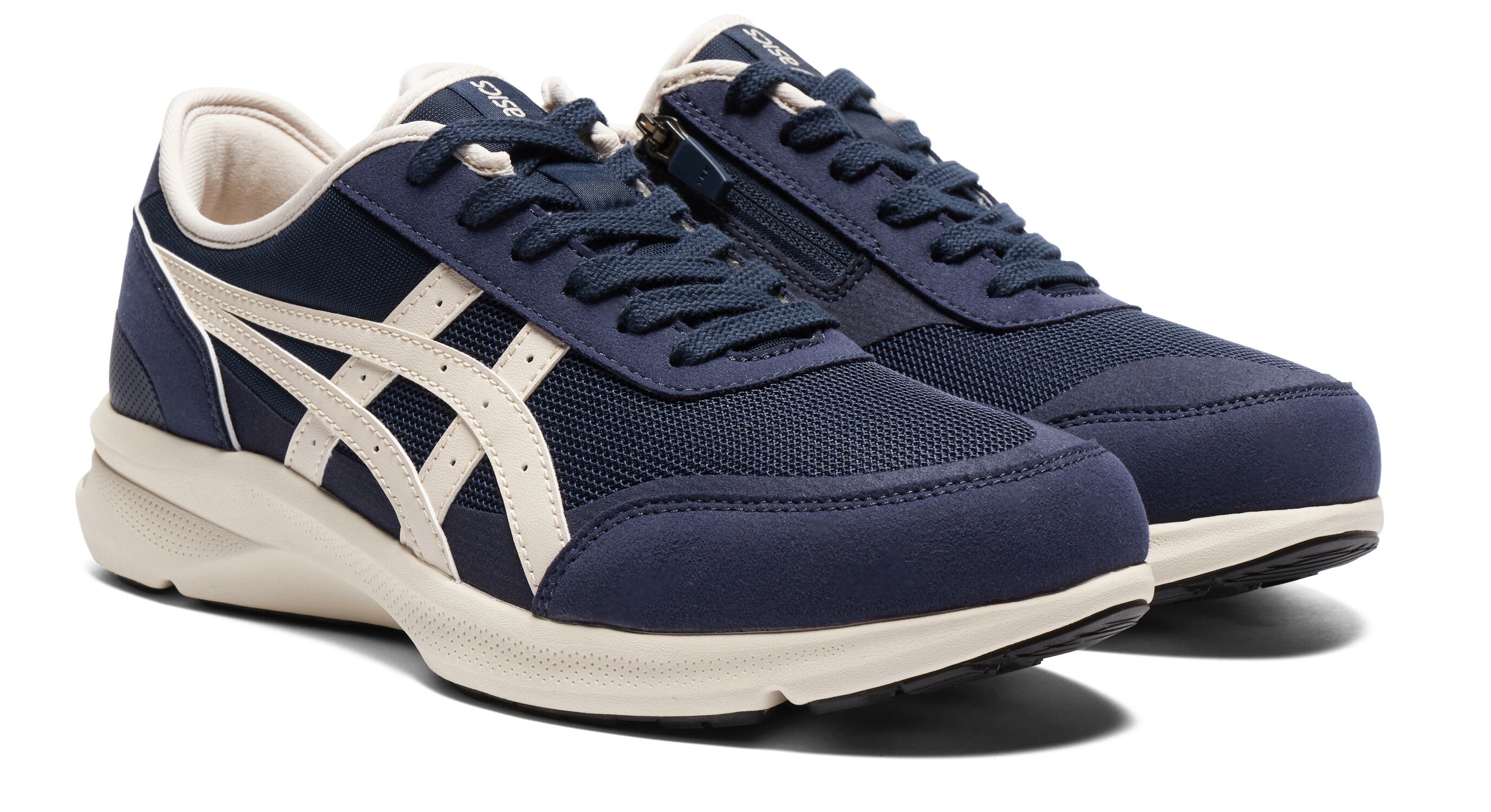ハダシ感覚の履き心地を追求した、軽量でスポーティなウォーキングシューズのロングセラーモデル。足入れ感のよさはそのままに、クッション性とデザイン性をアップデートしました。アッパーは通気性があり、やわらかなメッシュ素材です。ミッドソールにはクッション性の高い素材を採用。かかと部にはクッション性と軽さを兼ね備えたfuzeGELを搭載し、着地時の衝撃緩衝性を高めています。かかと部のミッドソールには反射素材を配置し、夜間の視認性を向上。中底はクッション性のあるシートE.V.Aにより、快適な履き心地です。中敷つま先部の裏側には消臭繊維MOFFを配置。悪臭の原因となるアンモニア・酢酸を中和します。かかと部と前足部、中足部の溝が連動することで歩行時の左右のブレを抑え、安定性を高める「グルーヴチェンジ」構造のソールを搭載。