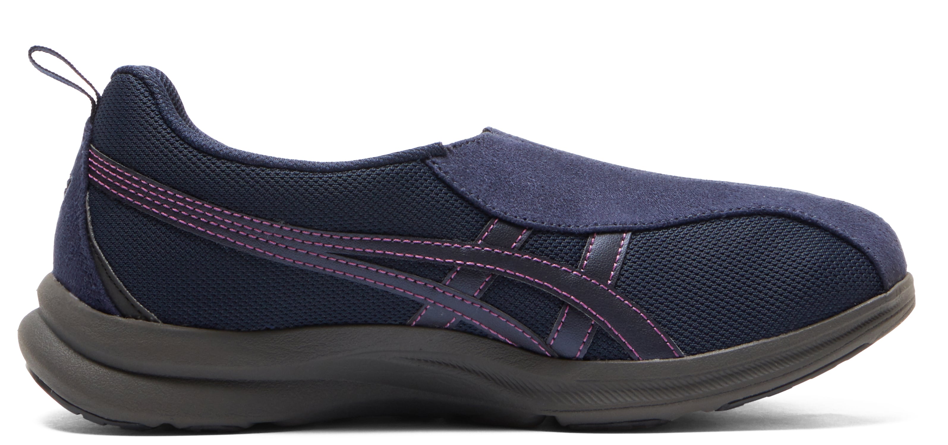 路面との接地面積を広げ、かかと部は少し上がったウォーキングカットに。年齢を重ねるとふらつきがちな着地時の安定性を高めました。